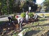 6年生で「ふれあい花壇」の花の植え替えをしました。葉ボタン、パンジー、ビオラの苗を、趣を変えて植えてみました。地域の方々にも喜んでもらえるとうれしいです。