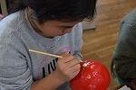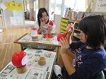 今日は「色つけ」をしました。だるまの顔を描く所に、赤いペンキがつかないよう、十分に注意しての作業です。