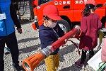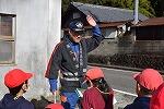 消防団の方に話を伺ったり質問したりした後、消防車に乗せていただきました。また、消火ホースを持つ等、体験もさせていただきました。ありがとうございました。