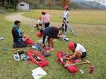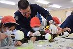 消防団の方に話を伺ったり質問したりした後、消防車に乗せていただきました。また、消火ホースを持つ等、体験もさせていただきました。ありがとうございました。