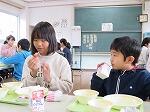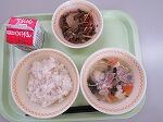 今日の地元産の食材は、回鍋肉に入っているキャベツとイチゴです。寒い日が続いていますが、イチゴの鮮やか赤い色は、給食を彩り春を感じさせます。
