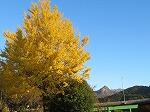朝日に照らされるイチョウと矢筈岳です。青空とのコントラストが美しいですね。