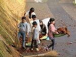 土・日あけの今朝は、子ども達と先生で、学校入り口の道路を掃除しました。