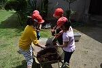 子ども達は、5月にしては日差しが厳しい中、汗をかきながらプールをきれいにしました。
