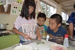 朝から「暑い、暑い」と言いながらも、子ども同士や先生との会話が弾んでいました。