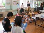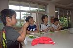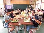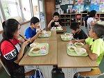この日は雨のため、水泳はできませんでしたが、体育館でミニバレーボールを使い活動しました。給食では、会話がはずんだようです。
