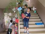 1・2年生が、七夕飾りを作り、笹の葉に飾り付けをしました。