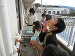 消防団の方に話を伺ったり質問したりした後、消防車に乗せていただきました。また、消火ホースを持つ等、体験もさせていただきました。ありがとうございました。