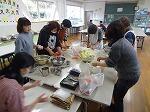 6年生は、じゃがいもを使った調理です。じゃがいもとベーコンと炒めたり、じゃがいもハンバーグを作ったりし、先生方にも試食していただきました。