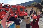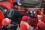 消防団の方に話を伺ったり質問したりした後、消防車に乗せていただきました。また、消火ホースを持つ等、体験もさせていただきました。ありがとうございました。