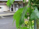 学校のプールのフェンスには、ヘチマが実をつけています。