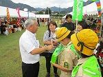 八戸小みどりの少年団が、ひのかげ渓谷まつり会場で募金活動をしました。