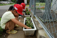 業間活動の時間と3校時に、本校周辺の「ごみ拾い」「プランターの世話」をしました。