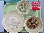 今日の給食は、地元の食材を使った牛丼、その名も「おいしさぎゅっと丼」でした。
