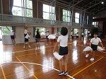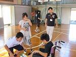 ネットくぐり→ハードル越え(くぐり)→タイヤ引き→平均台わたり→なわとび