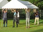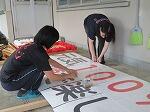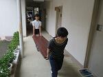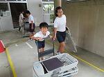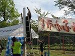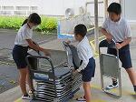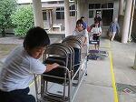 運動会の準備として、長机やパイプ椅子を運んだり、団の看板を装飾したり等しました。
