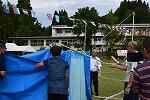 前日準備が雨で十分にできなかったため、運動会当日の早朝に準備をしました。天気が回復し、準備に来られた保護者の方の表情が明るいですね。