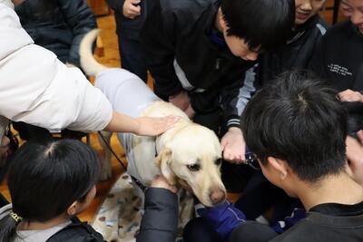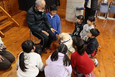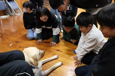 盲導犬マシュー君とも交流し、やさしく接する姿が見られました。