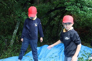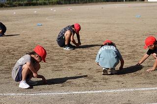 「秋探し」では校庭の色づいたイチョウやどんぐりを見つけて喜んでいました。