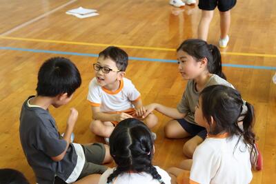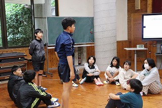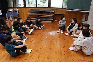 はじめに近くの友だちと話し合って、次にみんなで輪になって