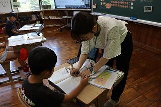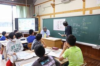 3・4年生、5・6年生で算数科複式授業を公開し、