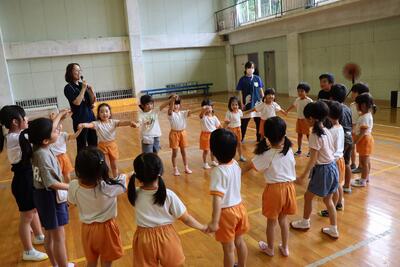 自己紹介の後は、自分たちで考えたクイズや、一生懸命練習した歌を歌って