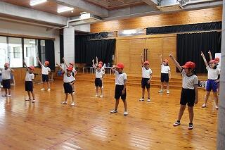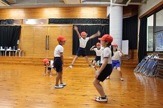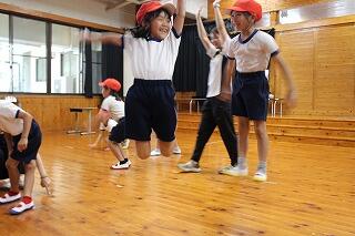 体力アップをめざして、朝のらんらんタイムでなわとびを始めました。