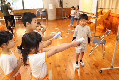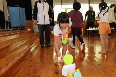 ふれあいじゃんけんやしりとりゲーム、風船バレーにかたもみタイムと、