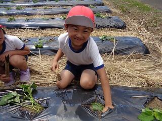 1・2年生が毎年恒例のいもの苗植えをしました。