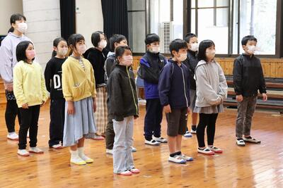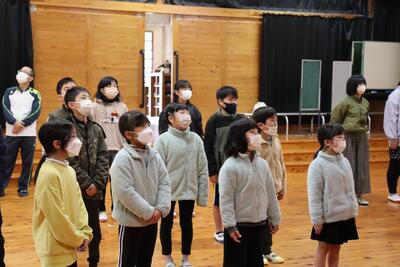 全校音楽です。卒業式に向けて、全校で歌の練習をしました。本番が近づいてきているため、子どもたちの顔も真剣です。