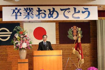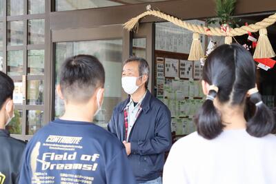 ※そのあと、卒業する皆さんへ、精魂込めた「卒業祝い品」が手渡しされました。その際、将来への思いを語ってくださいました。夢を持ち続けることの大切さなど短い時間ではありましたが熱い話でした。