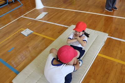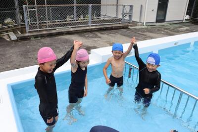 ペットボトルなどを使い「浮く」感覚を覚えます。