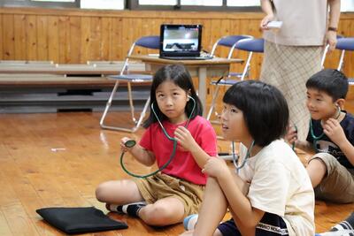 自分たちの心臓の音も聞きました。動物も人も同じように動いています。