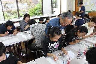 講師に高千穂町より疋田 順様をお招きして、親子で猫びん花模様アートに挑戦しました。