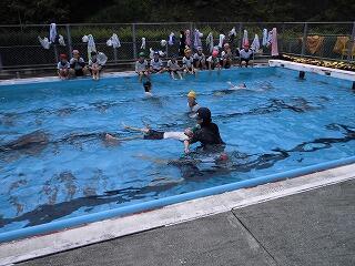 この学習は、着衣したまま水に入る体験を通して、水の中での動きにくさを体感するとともに、水の中でどう対処すればよいかについて学び、安全への意識を高めることを目的としています。子どもたちは、着衣したままで水に浮くためのさまざまな方法について学ぶことができました。