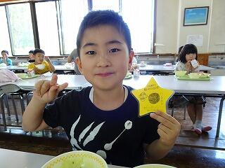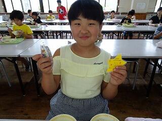 1学期最後までランチルームと各教室(4~6年)に分かれての給食でしたが、毎月この日を楽しみにしています。