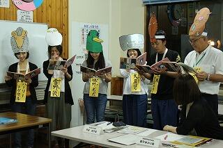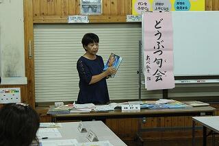 事前の準備や絵本の読み方、絵本の持ち方、ページのめくり方、絵本の見せ方、本の選び方など、読み聞かせの基本について、丁寧に教えていただきました。その後の演習では、6人で役を分担して「どうぶつ句会」という本を実際に読んでみました。すごく楽しい本で、子どもたちに聞かせたら喜ぶだろうなと思いました。参加された皆様も「すごく参考になり、今後の読み聞かせに生かしたい。」などのご意見をいただきました。