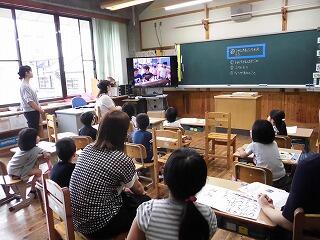 子どもたちは、普段と違う大人数での学習に、初めは戸惑いや緊張感を感じていたようですが、次第にうち解けて笑顔になり、他校の友だちと仲良くおしゃべりをする姿が見られました。