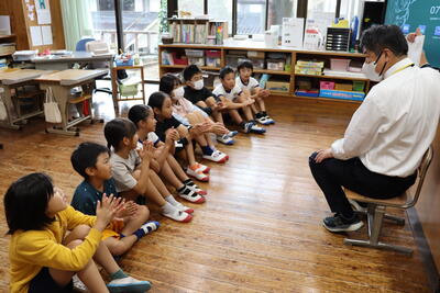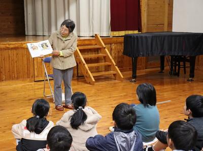 「読書は新しい世界との出会い」という話を、子ども達はうなずきながら聞いていました。