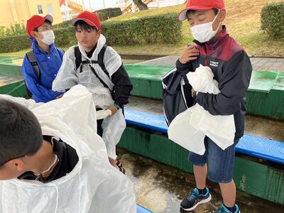 子ども達が泳ぐ前に、ちょっとプールから避難してもらいました。