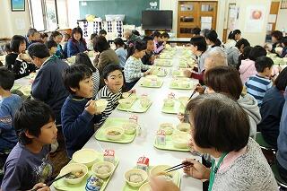 今回は、約20名の皆様に御参加いただき、子どもたちとの交流を深めていただきました。ふれあい活動では、グラウンドゴルフやおじゃみ、おはじき、けん玉、コマ回しなどの昔の遊び、竹でっぽう作りなどで一緒に遊びました。昔の人の知恵を感じてくれたのではないかと思います。また、その後は、子どもたちと一緒に給食も食べてもらい、楽しいひとときを過ごすことができました。御参加いただいた皆様、ありがとうございました。