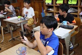 朝の時間に、全校でタブレットパソコンの使い方について、