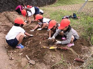 大きないもが姿を見せるたびに歓声を上げていました。夢中で掘っている姿がとてもかわいらしかったです。たくさん収穫できたことにみんな大満足のようでした。