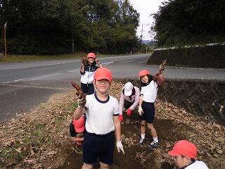 22日(月)の3・4校時に1・2年生がいもほりを行いました。