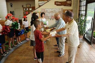 高齢者クラブの代表の方から6年生へ渡していただきました。