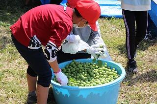 ※地域振興課 緑のふるさと協力隊の方にも協力していただき、たくさんの梅をちぎることができました。ありがとうございました。
