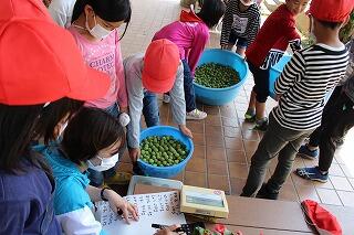 「梅ちぎり」3・4年生のイベントとして楽しみな行事の一つです。今年もたくさんの梅が収穫できました。コロナの関係で調理はできませんが、たくさんの梅に子どもたちも大興奮でした。