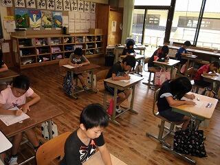 本年度から、時々それまでに学習した漢字の中から全校一斉に漢字テストを実施することにしました。今日は、1年生以外の学年で、第1回目のテストを行いました。どの学年の子どもたちも、家庭で練習をがんばってきたようで、一生懸命取り組んでいました。みんなが集中して取り組む姿、すばらしいと思いました。これからも、習った漢字をしっかり覚えられるように、みんなでがんばっていきましょう。