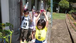はじめは振ってもなかなか色が出なかったのが、花びらを入れて思いっきり振ると鮮やかな紫色に変わりました。子どもたちもビックリ!