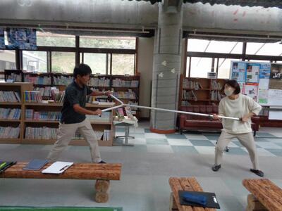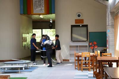 今日の避難訓練の反省やさすまたの使い方などを、質疑応答を交えながら行いました。